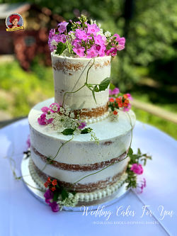 Look at this simple beauty. Two tiers of delicious three layer cakes, filled generously and lightly frosted to perfection. Fresh flowers always look amazing on a wedding cake. You'll see how to create a small and elegant cake like this one or a three tiered fully frosted cake masterpiece.... plus much more