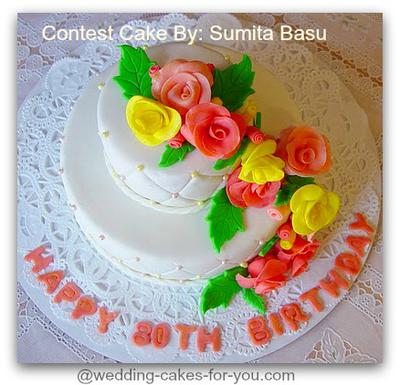 But despite the age and failing health, she has not lost the love in her voice or the concern for her grandkids.This cake was a first for me with fondant decorations and was handcrafted to honor her on her 80th birthday. The cake flavor was a mellow lemon with apricot-pineapple preserve as the filling.