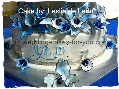 I painted the gumpaste flowers with pearl dust. To obtain the blue color I mixed a tsp. of lime juice with the coloring and that created the blue color I needed.