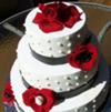 The decoration was simple fresh red rose petals with small black and white fondant roses in the center and a black fondant ribbon boarder.