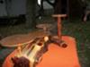 Handmade wooden cake stand made by the groom