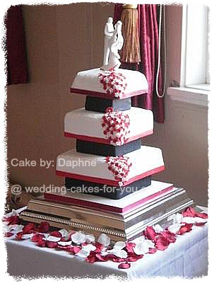 For dividers I used thee square dummies and covered them black fondant. The flowers were arranged down the side of cake edible diamonds were inserted within.