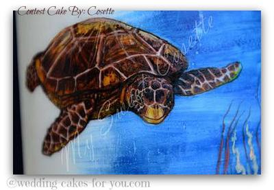 By the time I took on the challenge of this ocean cake, my husband and I had completed a few free-hand painted ones already. Every time he paints he is looking to improve from his last project and come up with some new idea.