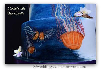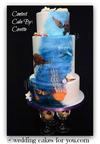 ELEMENTS OF THE SEAWe are both from the Monterey, California area, so subject inspiration came a lot from the Monterey Bay Aquarium’s amazing sea-life exhibits. My husband also lived in Hawaii as a child and spent a lot of time with his father in the ocean there. There are elements of Hawaii in the cake, from the humpback whale to the seashells.