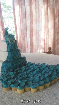 The final touches had to be done...seventy cupcakes arranged to depict his feathers fanned out each cupcake adorned with a feather sculpted from gumpaste and painted with petal dust and vodka. Oh what a regal affair. It was at the point of display a name emerged. "Peacock Pride"