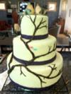 This design posed several challenges for me. The bride wanted a 'rum cake' layer and a 'green' (environmental) theme for the wedding.