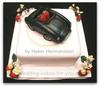 My wedding cake design therefore had to incorporate a vintage car and strawberries! The result was a very rich fruit cake covered in fondant icing with a replica of an AC ACE racing car mounted on the top (on a royal icing plaque) being driven by two happy strawberries! I even managed to make replica tyres and put on their car's number plate.