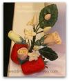 The car was complete with trailing bottles, beer cans, shoes and boots at the back. The 4 corners of the car were decorated with the same flowers as the bride's bouquet: peach and yellow coloured roses - with the addition of strawberries!